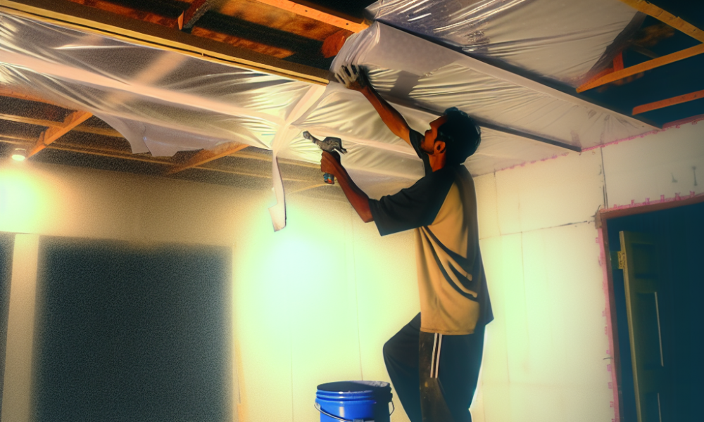 Установка пароизоляционного пленочного покрытия на потолок
